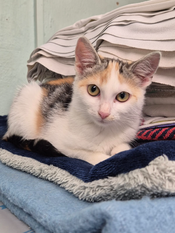 Klara ist 6 Monate alt. Am Anfang ist sie etwas ängstlich, taut aber mit etwas Geduld und Zeit auf. Sie ist kastriert und hat einen Chip. Sie sollte erst einmal drinnen gehalten werden, bevor es in den Freigang geht.